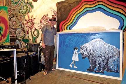 “We were doing giant live art installations. We would have 10 foot by 10 foot canvases where we would put live models against the canvases. We would actually paint their body and paint them into the paintings of this size and put projectors on them, so the paintings would move,” Weaver said.