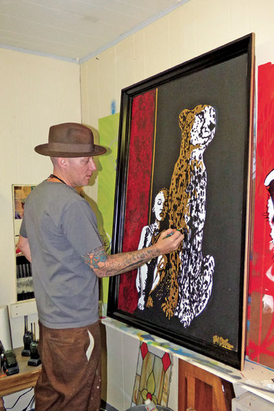 “My artwork has fallen into an urban direction,” he explained. “It’s an urban style with a very classy unique twist. It came from my dreams and my heart. I do believe you need to speak through your art. It’s just not pretty pictures all of the time. It needs to tell a story whether it’s love, or pain, or sadness. I think that is what I’m addicted to. I’m addicted to completely losing myself into my artwork and taking it to the limit.”