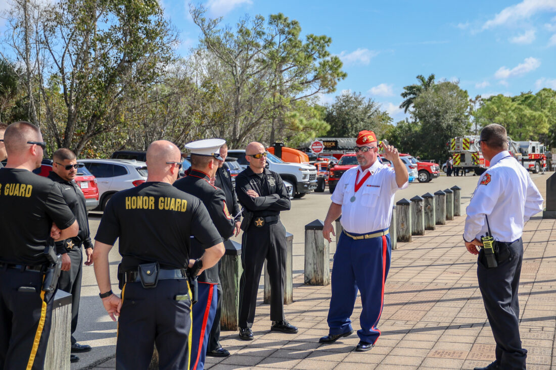 Lee County Sheriff’s Department Lieutenant Angelo Vaughn and USMC veteran CPL E4, Master of Ceremonies Alexis Giambrone, and Marine Corps League Sr. Vice Commandant Matthew Giambrone, USMC LCPL E3 and Iraqi Freedom War veteran. MARK CLIFFORD