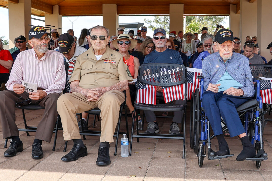 Seated in the front row was one of three WWII veterans, John Camp, US Navy LCDR O4. MARK CLIFFORD
