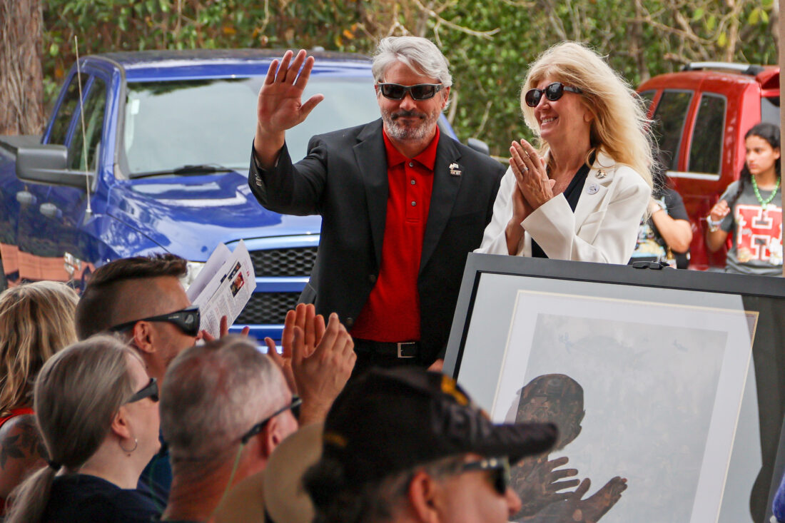 The ceremony attendees acknowledge the mayor of Punta Gorda, Dr. Deborah Lux, US Navy veteran and her husband, Judge Sean Lux, US Air Force veteran, as being founding members of the Collier-Lee Honor Flight program. MARK CLIFFORD