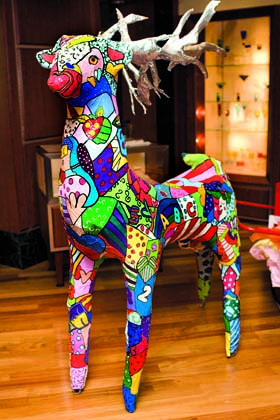 The herd of decorated deer slated for the Bell Tower shops “Deer Santa” Auction is on display and ready to be enjoyed in a home or business for Christmas.