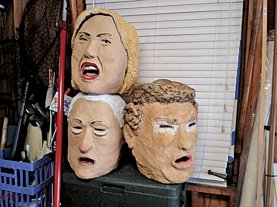 After a trip to Lowe’s and Home Depot, Abbott said he builds a skeleton out of PVC piping and follows it up with spray foam, as is used in insulation. After carving the figures with a hacksaw blade and sculpting his image by sanding it down, he then covers it with paintable silicone rubber, which he said is just caulking from a tube.