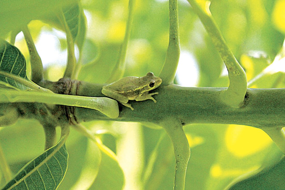 “I was drawn by the soft green tones from the shallow depth-of-field,” said Greenbaum. “You get a sense that the frog was hiding in there. Look, you can even see the little pads on its feet.”