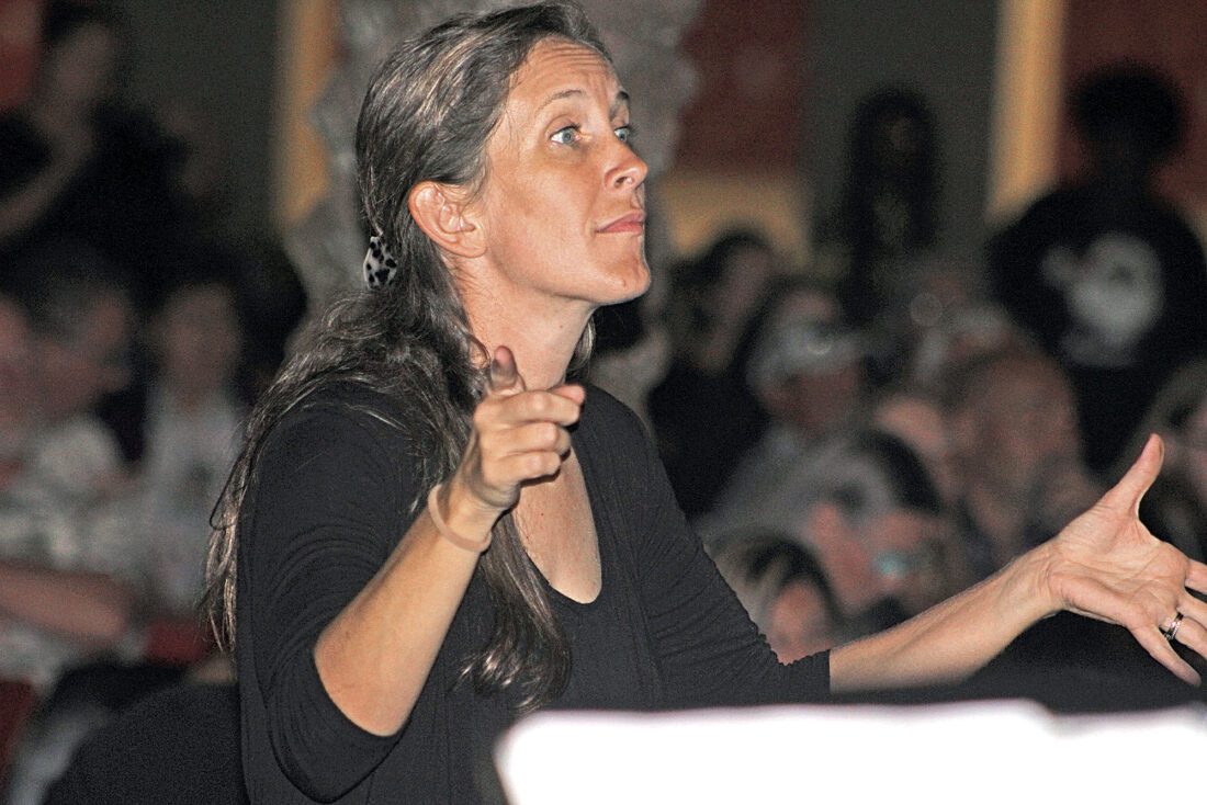 Music Director Sarah Johnson-Scalisi conducts the jazz band during the annual North Fort Myers High School Christmas Concert in the courtyard Friday.