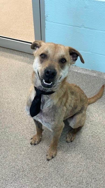 But on a difficult day in January 2024, we received a call from his owners. Jingle, they said, was suffering from severe allergies. They had tried everything, nothing had helped, and they were moving and couldn’t take him with them. And just like that, the once-joyful Christmas puppy returned to our care–full grown, itchy, uncomfortable, and nothing like the vibrant pup we had known.
