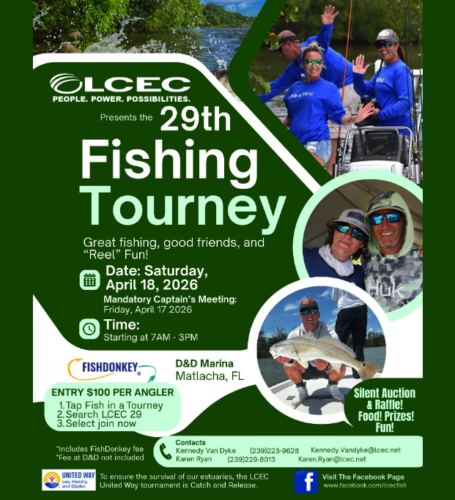 Anglers are being sought to participate in the 29th annual LCEC Fishing Tournament — a virtual tournament — to benefit the United Way of Lee, Hendry, and Glades Counties this April with festivities to take place at D&D Matlacha Bait and Tackle.