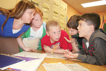 Patricia Calamela’s fifth-grade class split into seven groups for the Stock Market Game. They started with $100,000 in their portfolio and competed against 302 Southwest Florida teams using their researched and purchased stocks.