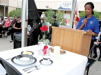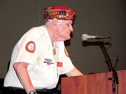 World War II veteran Don Tallon, commander of the Collier Chapter Ex-Prisoners of War, addressed the audience and explained the Missing Man Table Ceremony.