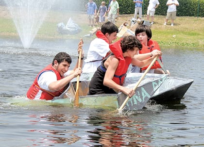 Joe Torregrasso was excited to see if his “Rockin Rocket” cardboard boat would make it across the lake Friday afternoon. He said the boat was constructed out of different shapes and measured about 10 feet by 2 feet.