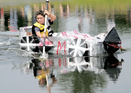Sidell, who was the only student in the boat Friday afternoon, said he used lots of cardboard and tape to secure the craft.