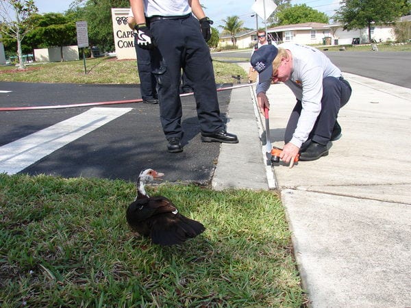 “Since there was no way to get down to the ducks, and since ducks love water, it made sense to float the ducks up to within reach,” said Michael Heeder, Cape Coral Fire Department spokesperson.