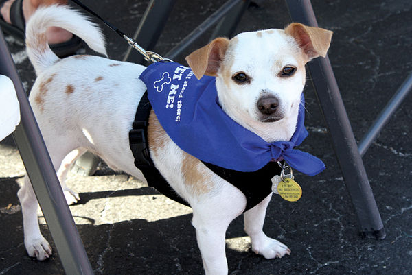 Smitty, a Jack Russell/Chihuaua mix, gets ready to use the improved dog park during the dedication ceremony of the park Saturday at the Shell Factory.