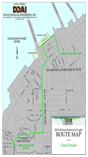 On Saturday, Feb. 20, the Fort Myers Police Department will close the following roads beginning at 5 p.m. for the Edison Grand Parade, unless otherwise noted: