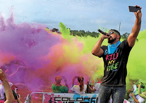 After the run came the after-party, which featured paint battles which guaranteed few people left the complex clean. Even Supa Dave, the DJ, was clobbered with color as he took a selfie of himself and the thousands who partied to the beat.