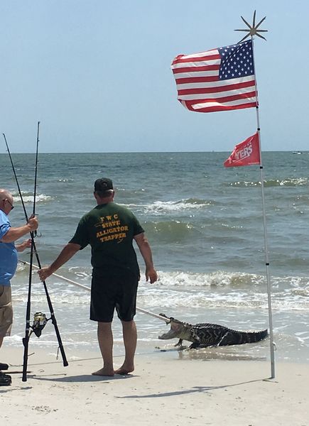 Fleming said some on the beach wondered if the recent Lake Okeechobee releases of fresh water may have contributed to the gator’s desire to enter the gulf.