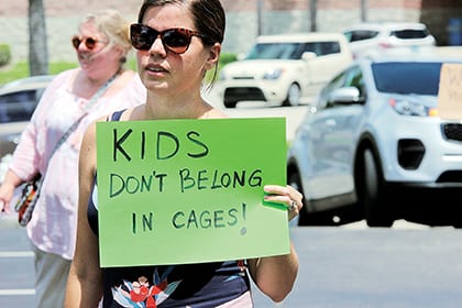 Signs that read, “Kids don’t belong in cages” and “Close the camps” accompanied rallying cries of, “Love trumps hate,” “Immigration is not a crime,” and “Families belong together” as their voices rang out 180 miles northeast of Homestead.