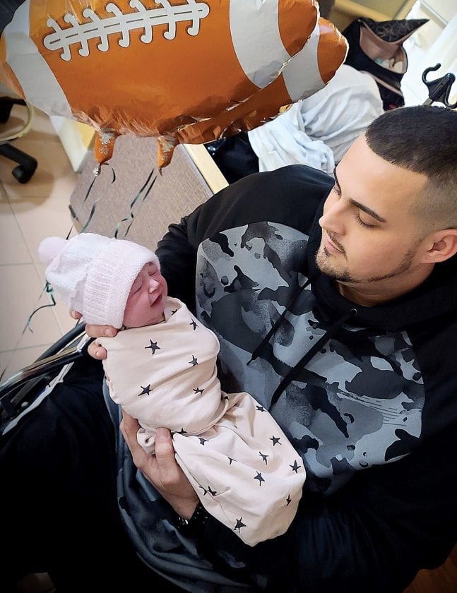 At 3:30 Sunday morning Brittany’s water broke and just before 6 a.m., healthy, 7-pound 5-ounce Khloe had arrived.