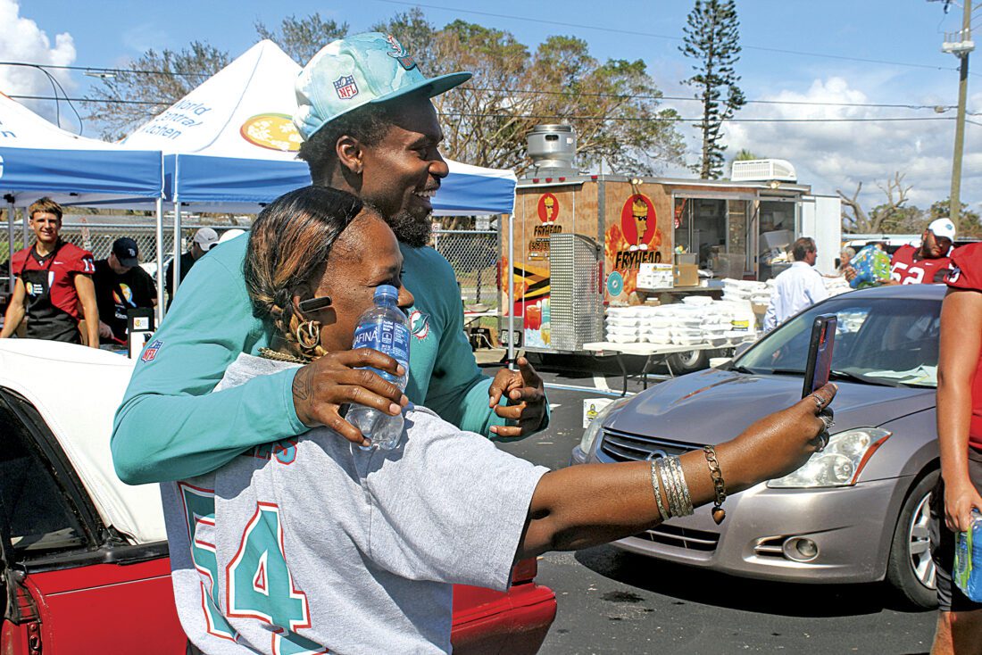 That backup came in the form of his teammates from the Miami Dolphins, who, on their off day, along with the athletes from North Fort Myers High School, helped spread some good fortune to thousands of people.