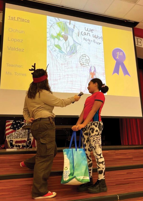 Supervisory Refuge Ranger Toni Westland said Lopez Valdez’s “message ‘we can work together’ seems just so appropriate right now, and I talked to the students how people are working together to bring the refuge back, so it was a great teaching moment.”
