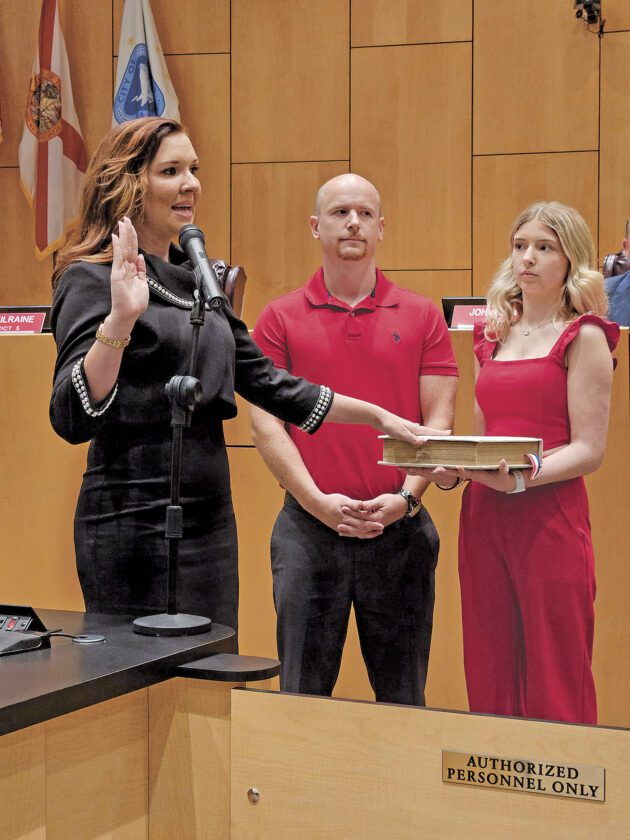 One by one, each new council member came to the front of the room, placed their hand on a Bible, and recited the words that swore them to support, protect, and defend the Constitution and government of the United States and the state of Florida, as well as faithfully perform their duties and uphold the city charter.