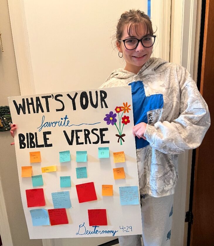 “I thought about this project because I am a Christian and I’m very involved in my faith and I love to talk about God and grow and help people grow and the relationship with God,” Onorevole said. “And so I founded this project because there’s a lot of people, especially in middle school, that are dealing with so many voices around them, and they don’t really always know where to go to. And even people in my youth groups and communities at my church don’t always have the right people around them.”