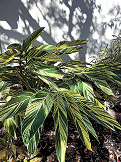 When planning a garden, interspersing brightly colored plants with green leafy plantings defines the area with a contrast of colors. Crotons (Codiaeum variegatum) with their brilliantly colored leaves, feature many leaf types and sizes, from swirly ribbons to wide, flat leaves. This perennial shrub has the best color in bright, indirect light and does well in fertile, well-drained moist soil. Coleus (Plectranthus scutellarioides) is a heat tolerant, durable annual that has very few disease or insect problems. It is known for its colorful foliage and can be paired with the selloum philodendrum (Thaumatophyllum bipinnatifidum), or the variegated ginger (Alpinia zerumbet “Variegata”) for a dramatic effect. The selloum philodendron grows quite well in full sun or partial shade and needs some room to spread. It can also be used in large containers which look attractive on the patio or at poolside. The variegated ginger is a striking foliage plant with its large yellow and green striped leaves and its clusters of fragrant white flowers blooming from summer to late fall. It is an herbaceous perennial which needs room to spread and does best in partial shade.