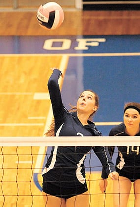 Tiffani Schram served up 13 aces to lead the Sharks and added 10 assists with four digs. Larra Bickelhaupt delivered five kills, eight digs and six aces. Sisters Sam Bebber finished with eight kills and Danielle Bebber six kills with four aces.