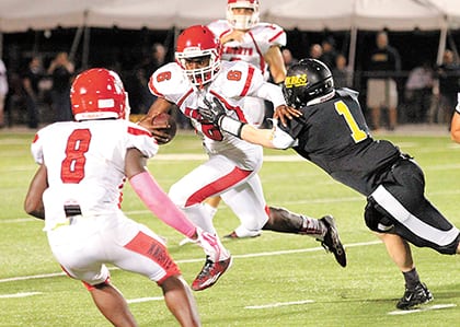 White, a sophomore, scored his touchdowns three different ways. He ran for TDs of 46, 75 and 72 yards, caught a 71-yard TD pass and returned an interception 32 yards for a score.