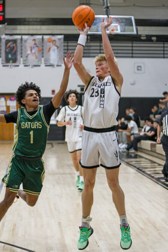 Mariner’s Trey Lemus pulls up and drains the 3-pointer putting the Tritons ahead 34–21 halfway through the second quarter. MARK CLIFFORD